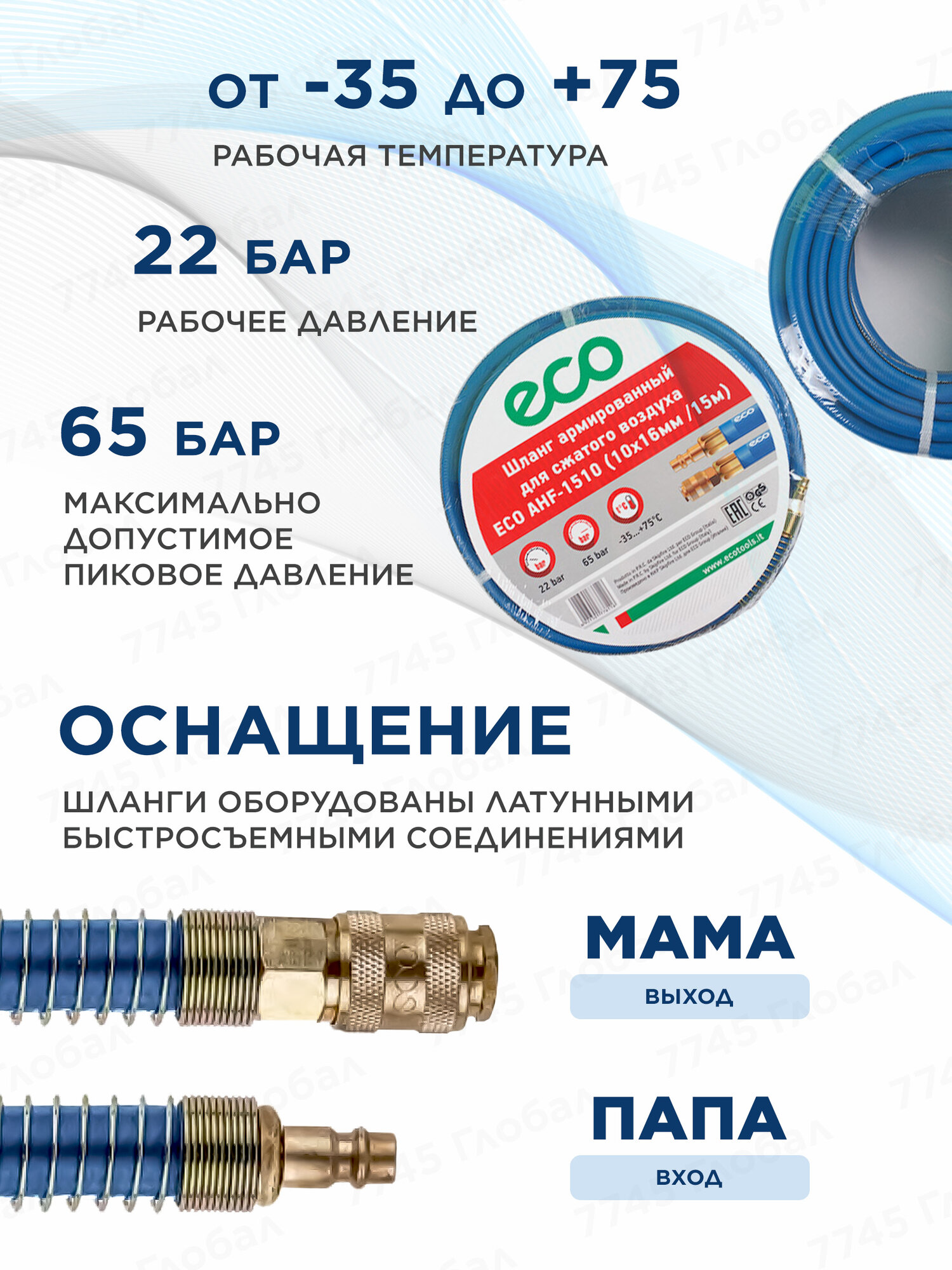 Шланг армированный для компрессора быстросъемный 15 м 10/16 мм ECO AHF-1510 интересное: