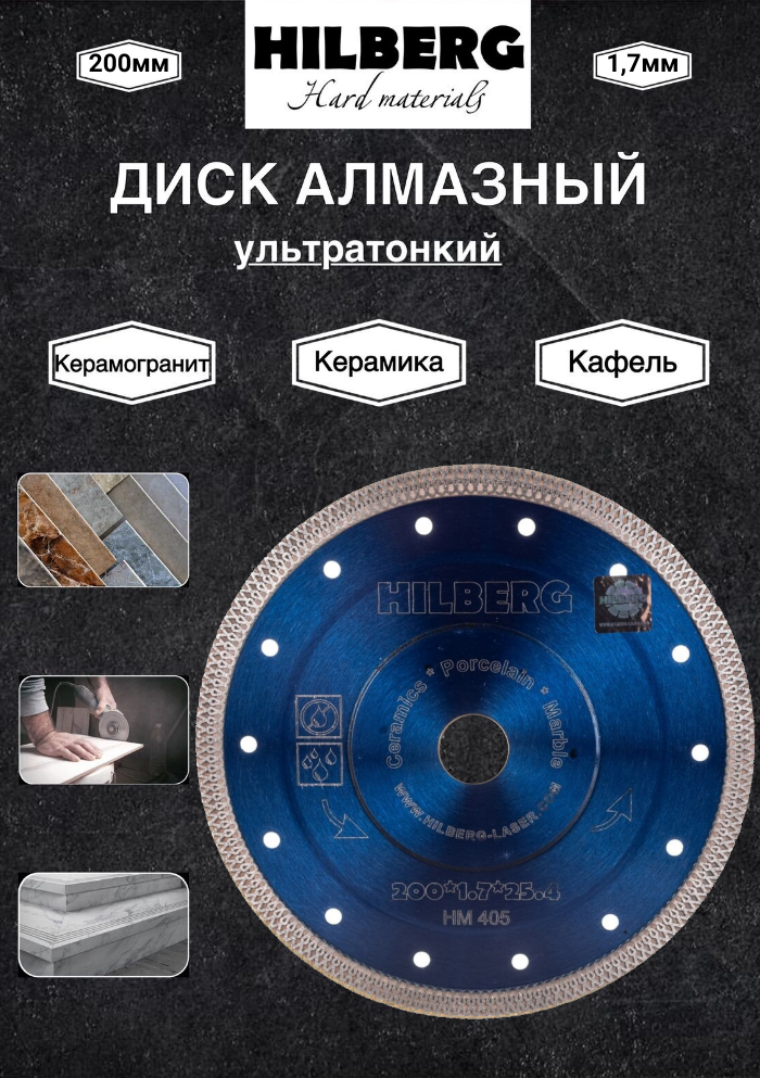 Диск алмазный отрезной 200*1.7*25.4 Hilberg HM 405
