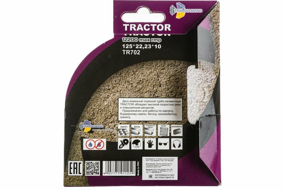 Диск алмазный отрезной TRACTOR (125х22.3х10мм) TRIO-DIAMOND TR702