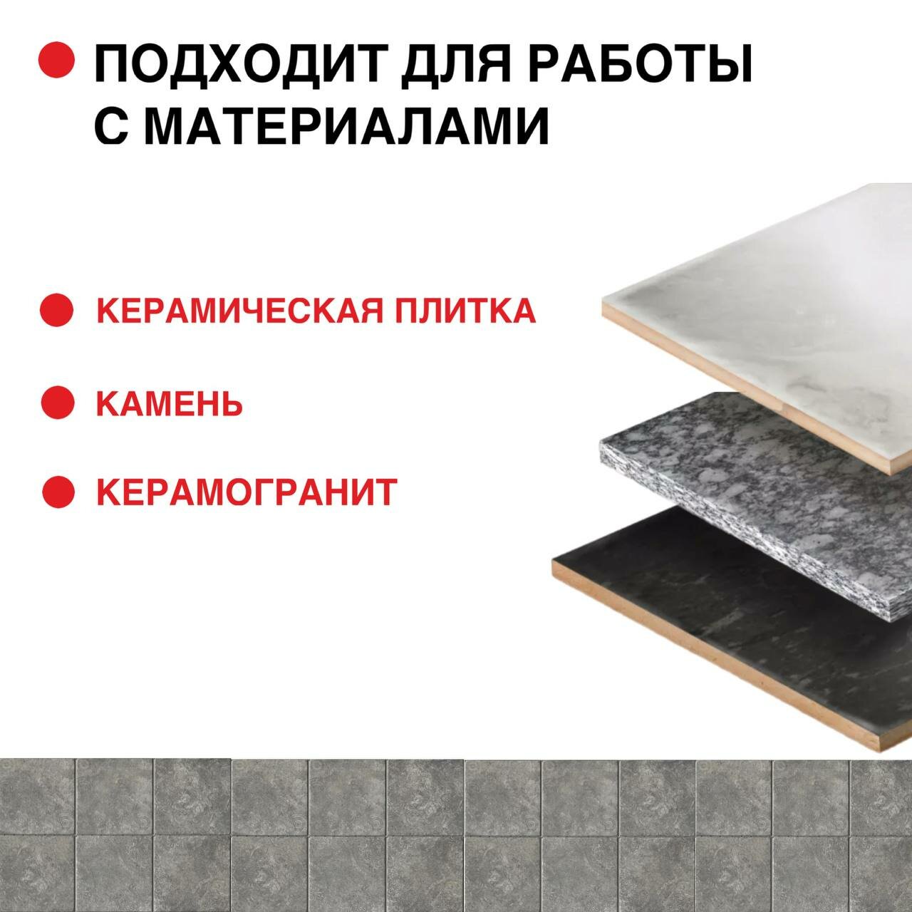 | Материал обработки | армированный бетон / бетон / камень / керамика / керамогранит / кирпич / универсальный |
