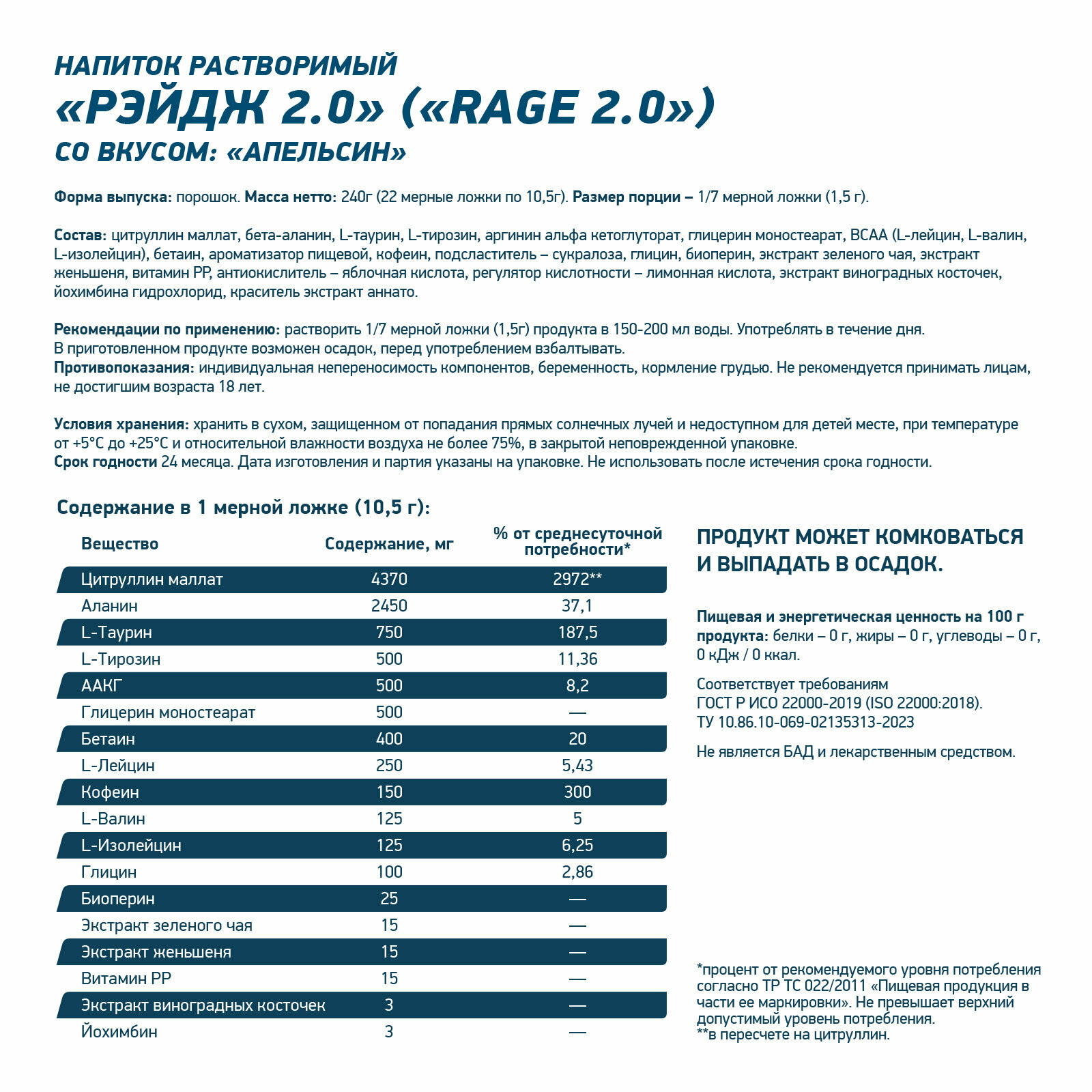 Энергетик RAGE 2.0 240 g Фанта интересное: