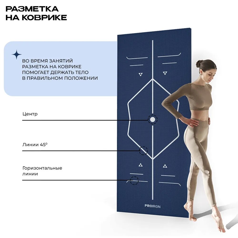 Купить Коврик для фитнеса и йоги, PROIRON, нескользящий, размеры 1730*610*4мм, ПВХ, темно-синий