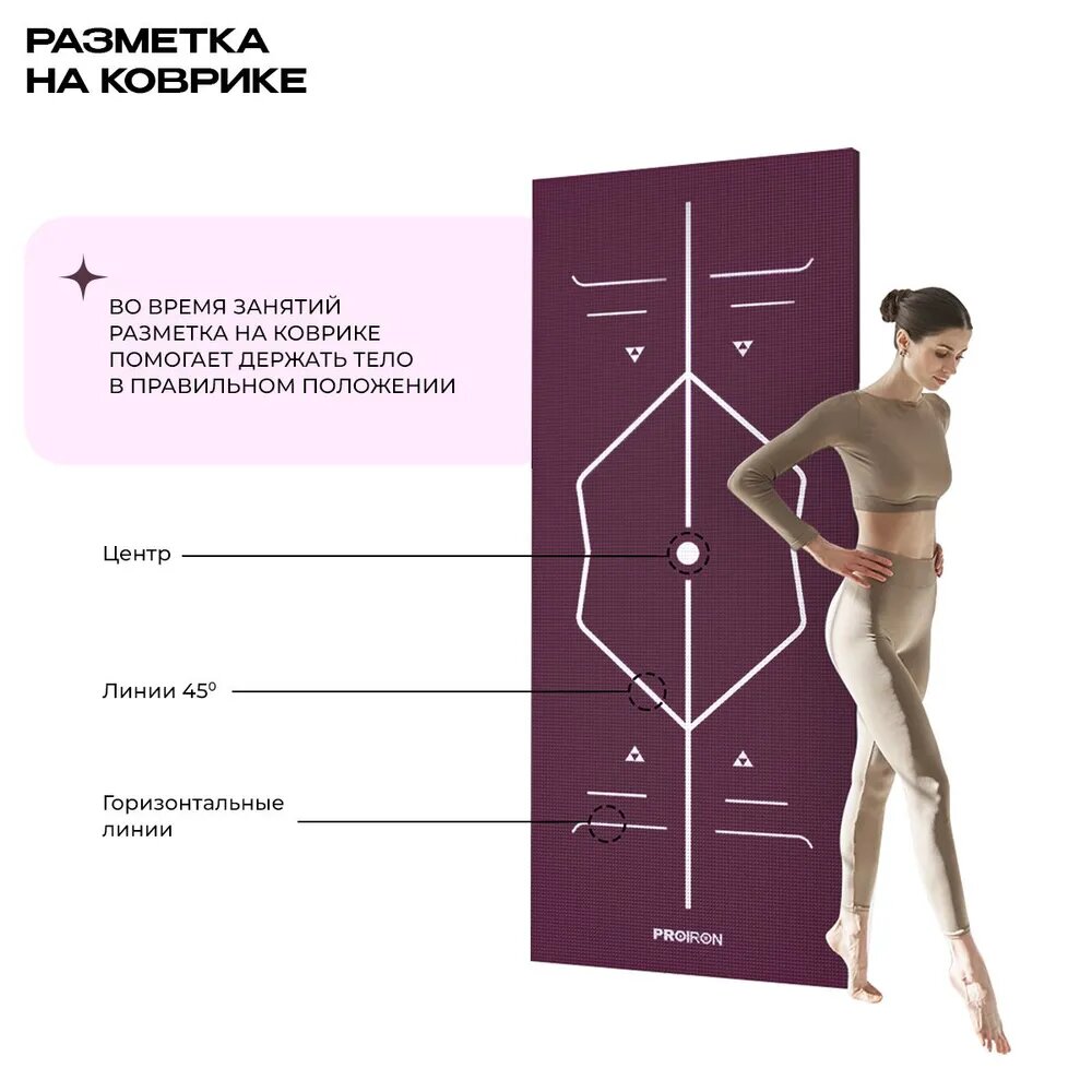 Коврик для фитнеса, PROIRON, нескользящий, размеры 1730*610*4мм, ПВХ, фиолетовый
