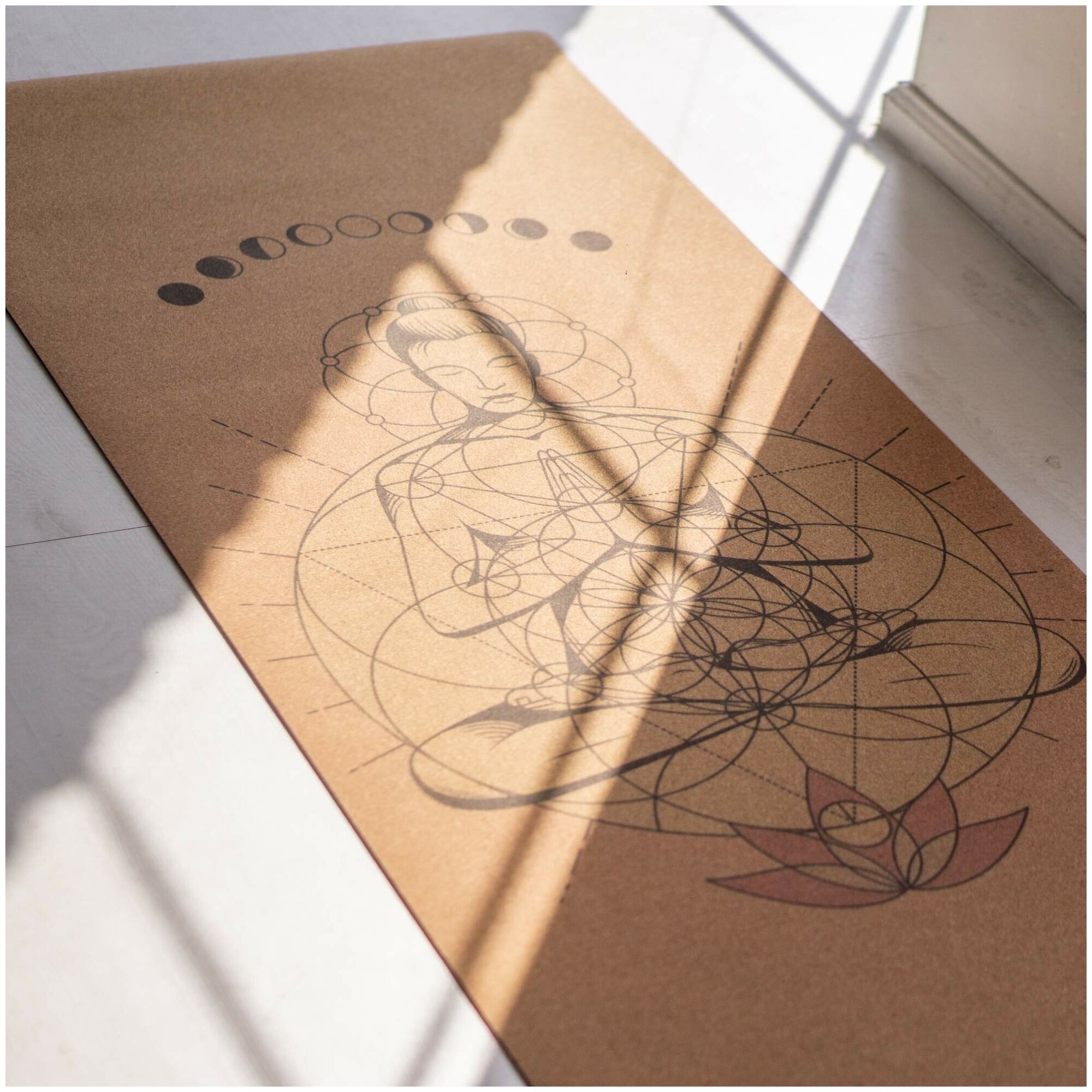 Коврик для йоги и фитнеса пробковый - Арт Йогаматик Сила, 183x66x0.4 см интересное: