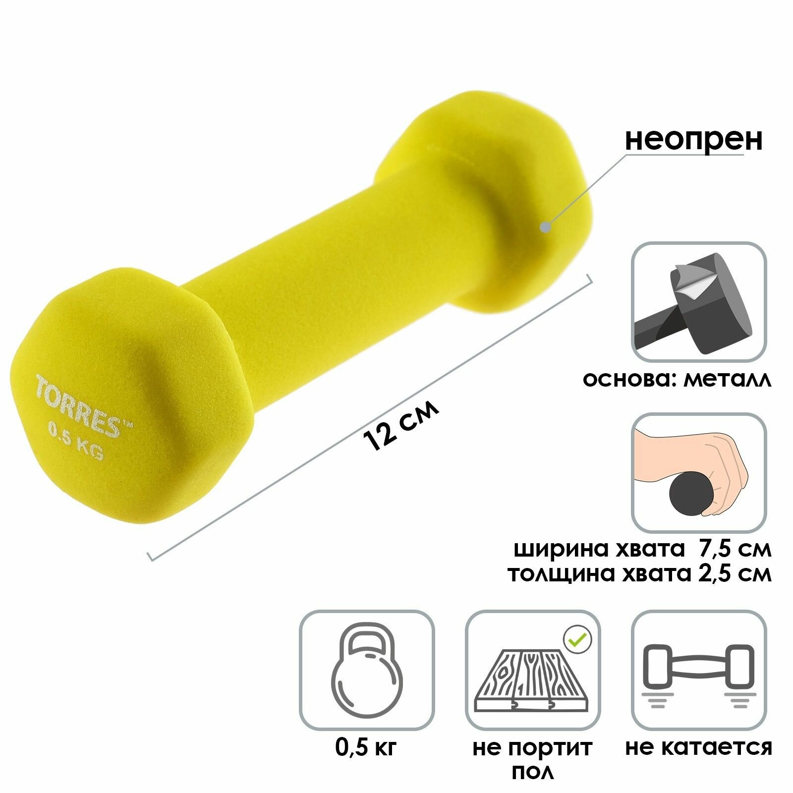 Гантель TORRES PL550105, ВЕС 0.5 КГ (1 штука) интересное: