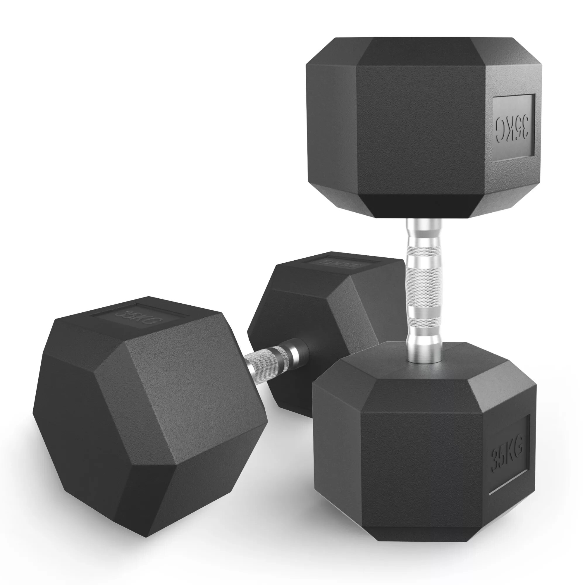 Купить Гантель гексагональная UNIX Fit обрезиненная 35 кг, прорезиненная спортивная гантель с металлической ручкой литая неразборная, 1 шт.