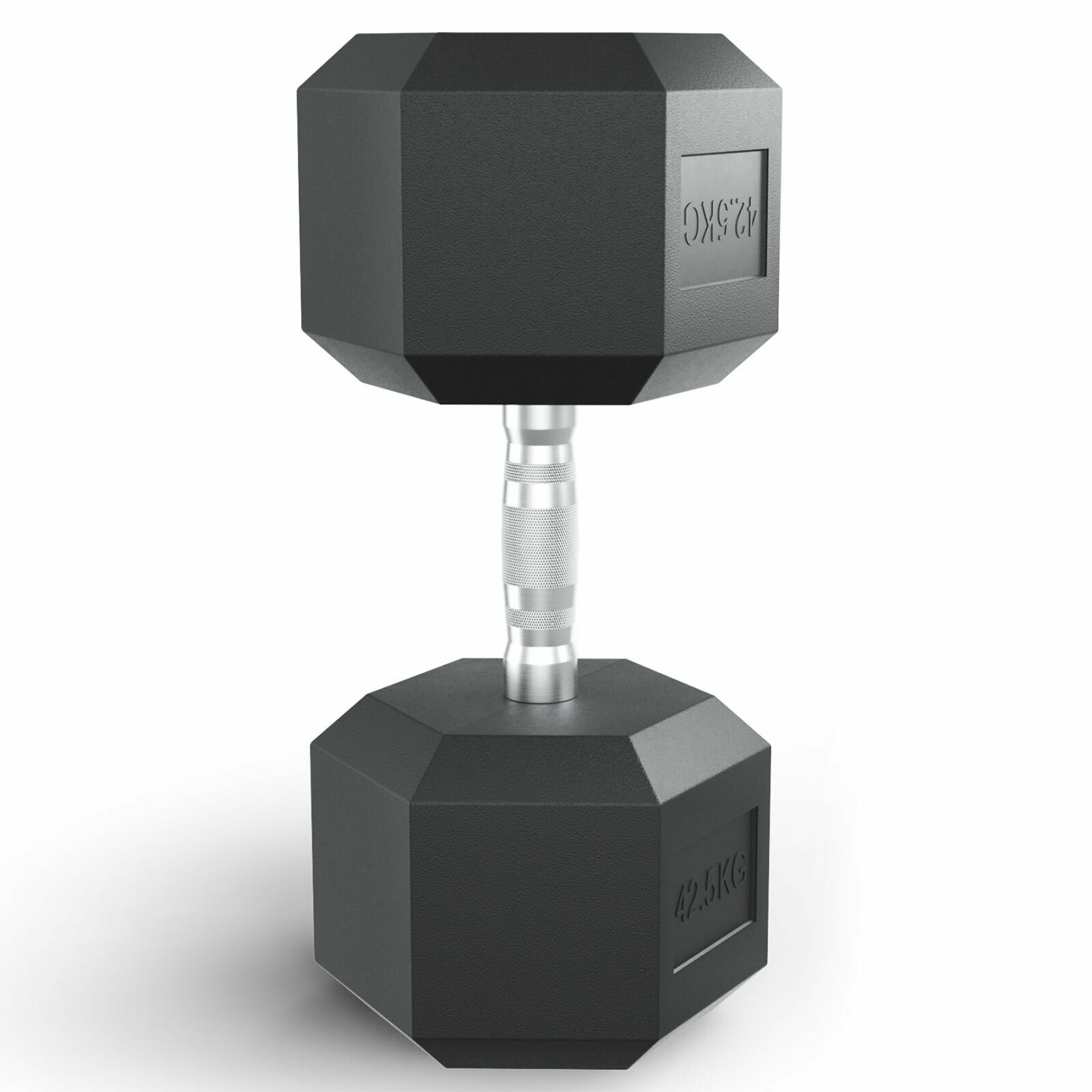 Купить Гантель гексагональная UNIX Fit обрезиненная, прорезиненная спортивная гантеля с металлической ручкой литая неразборная, 42,5 кг, 1 шт.