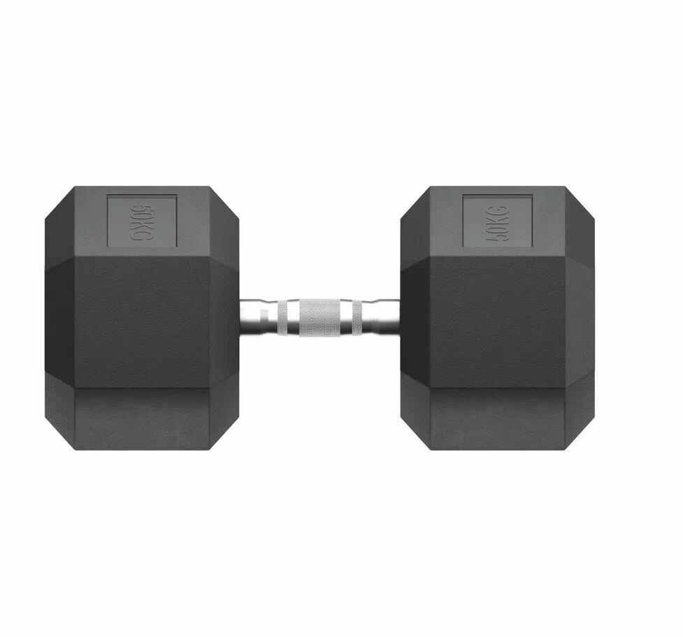 Гантель гексагональная UNIX Fit обрезиненная, прорезиненная спортивная гантеля с металлической ручкой литая неразборная, 50 кг, 1 шт.