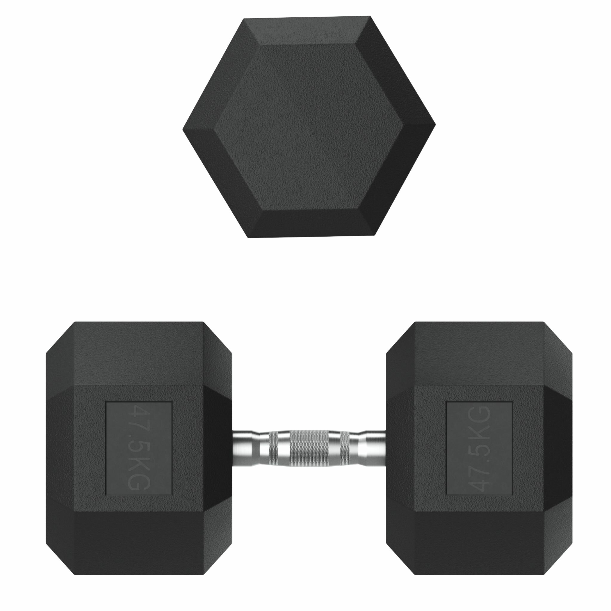 Купить Гантель гексагональная UNIX Fit обрезиненная, прорезиненная спортивная гантеля с металлической ручкой литая неразборная, 47,5 кг, 1 шт.