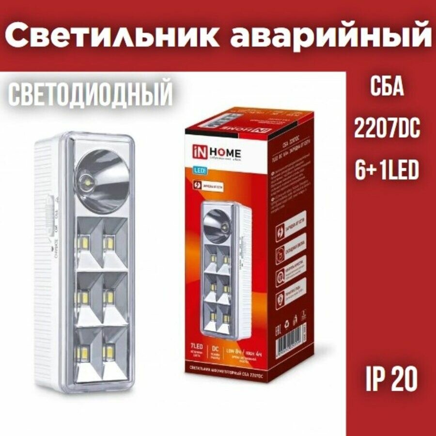 Светильник светодиодный СБА 2207DC 6+1LED 1.0А.ч lithium battery DC аварийный IN HOME 4690612029559 интересное: