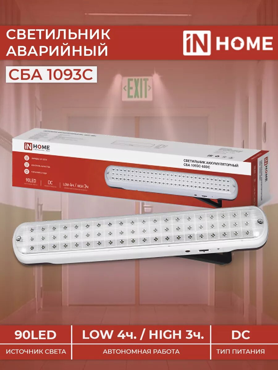 Светильник светодиодный аварийный СБА 1093С-90DC 90LED Li-ion DC IN HOME