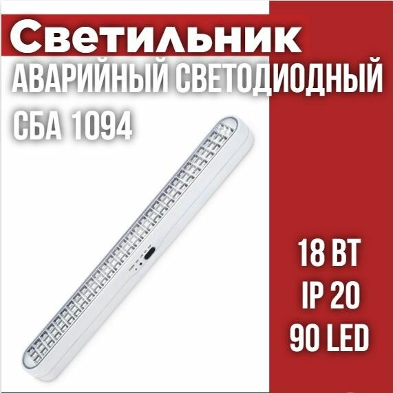 Светильник светодиодный аварийный СБА 1094-90DC 90LED 2.0Ah lithium battery DC IN HOME
