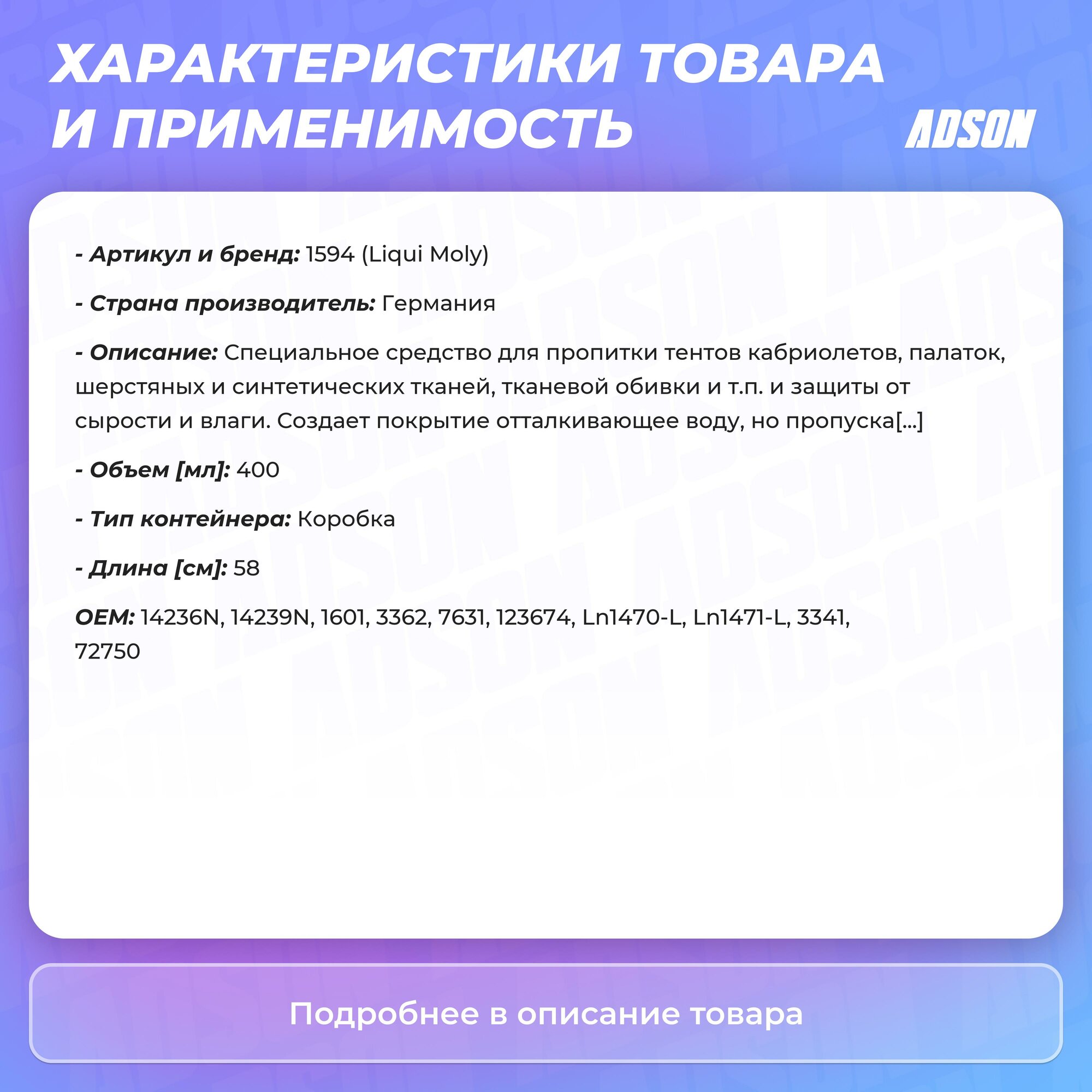 Гидрозащита Кожи И Текстиля (400Ml) LIQUI MOLY арт. 1594 интересное: