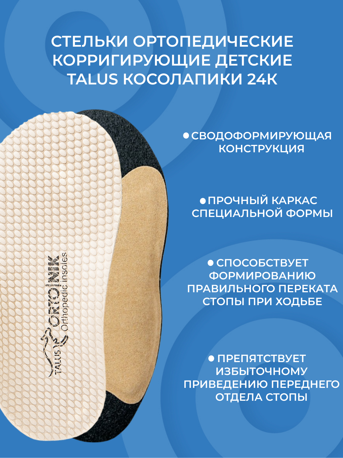 Детские корригирующие ортопедические стельки Talus Косолапики 24К, размер 13