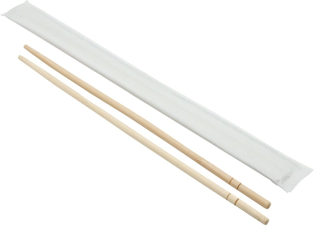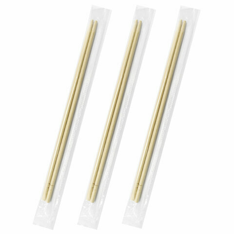 Палочки для суши бамбуковые 23 см, круглые, комплект 100 пар в индивидуальной бумажной упаковке, стандарт, 401-863