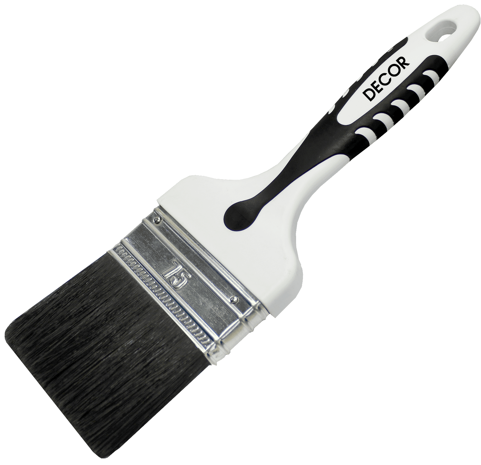 Малярная кисть DECOR плоская для грунта 50 мм черная-белая синтетическая щетина, длина щетины 54 мм, пластиковая противоскользящая ручка