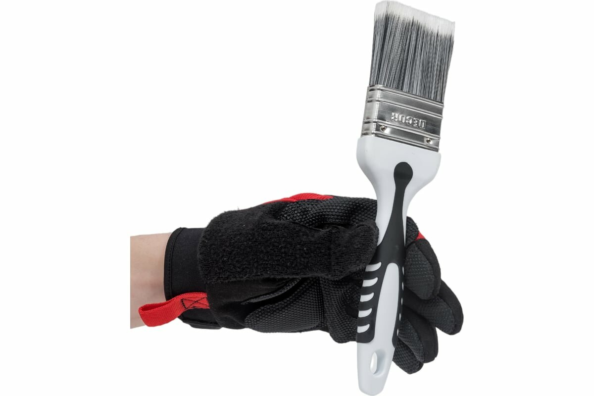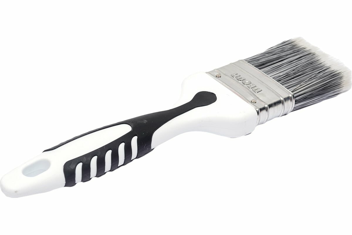 Малярная кисть DECOR плоская для грунта 50 мм черная-белая синтетическая щетина, длина щетины 54 мм, пластиковая противоскользящая ручка