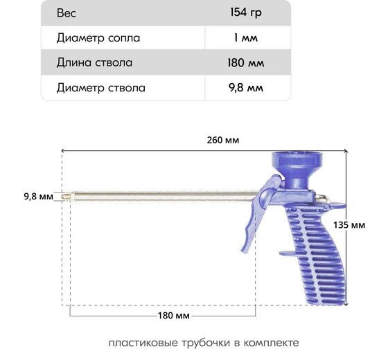 Пистолет для монтажной пены, облегченный пластмассовый корпус Сибртех