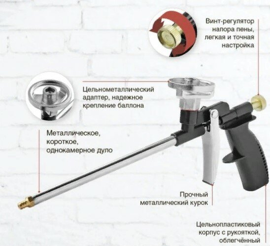 Тундра Пистолет для монтажной пены тундра, металлический корпус