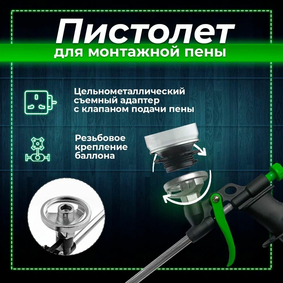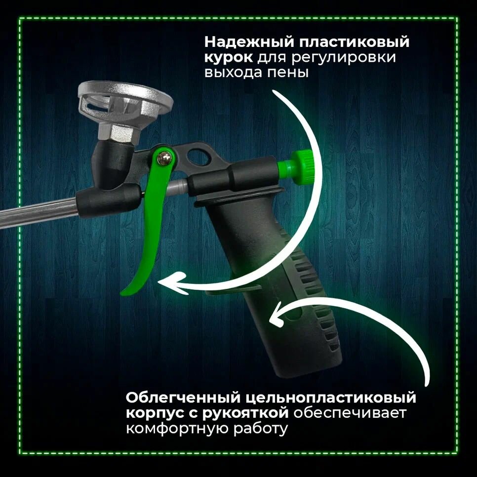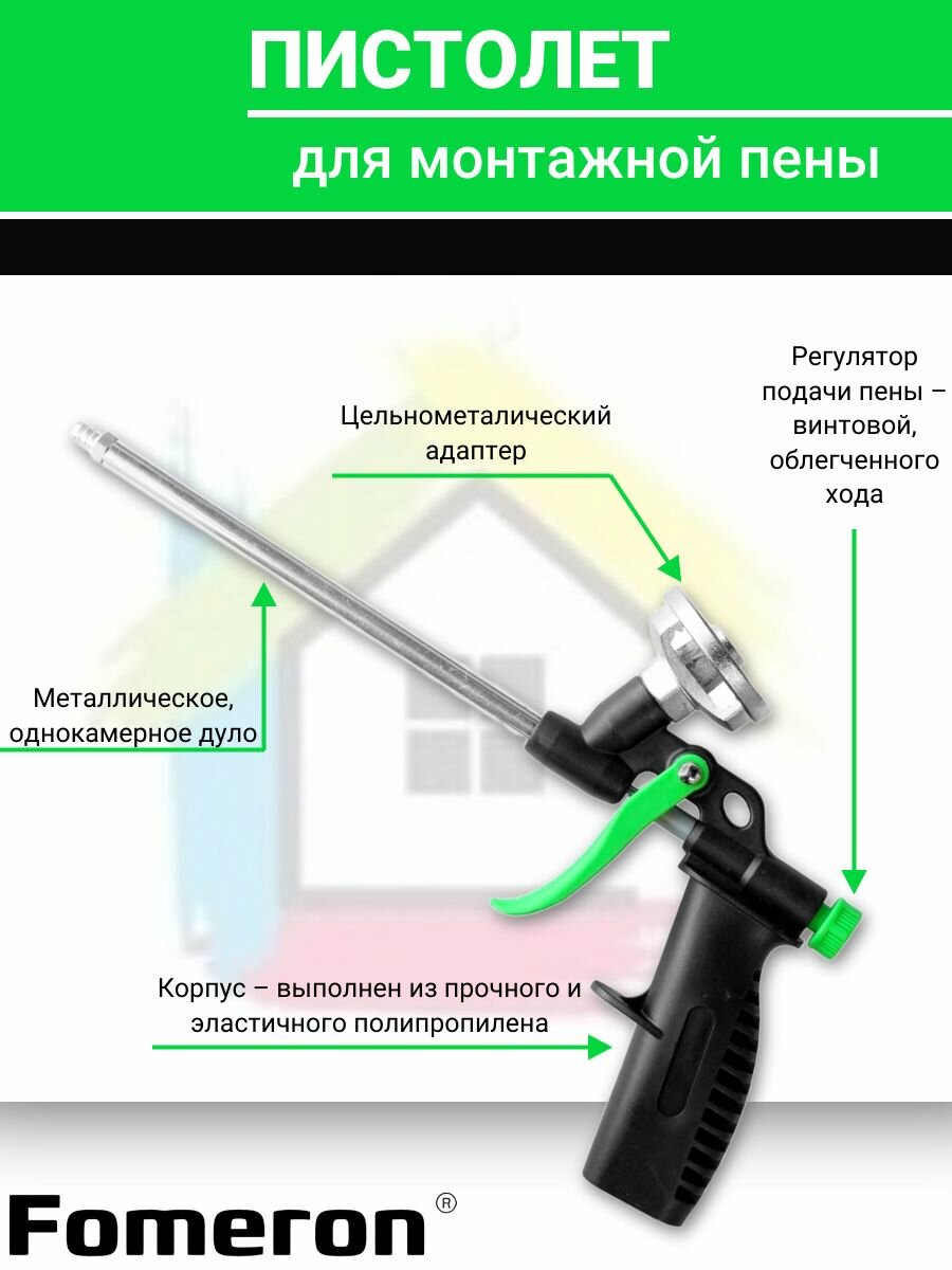Пистолет для монтажной пены Fomeron DIY-L, профессиональный, черно-зеленый