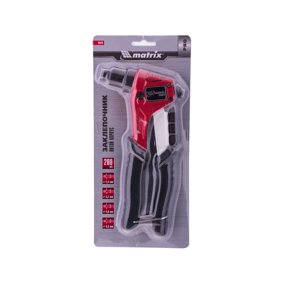 Заклепочник литой Matrix 40546, 200 мм, заклепки 2,4-3,2-4,0-4,8 мм, Pro
