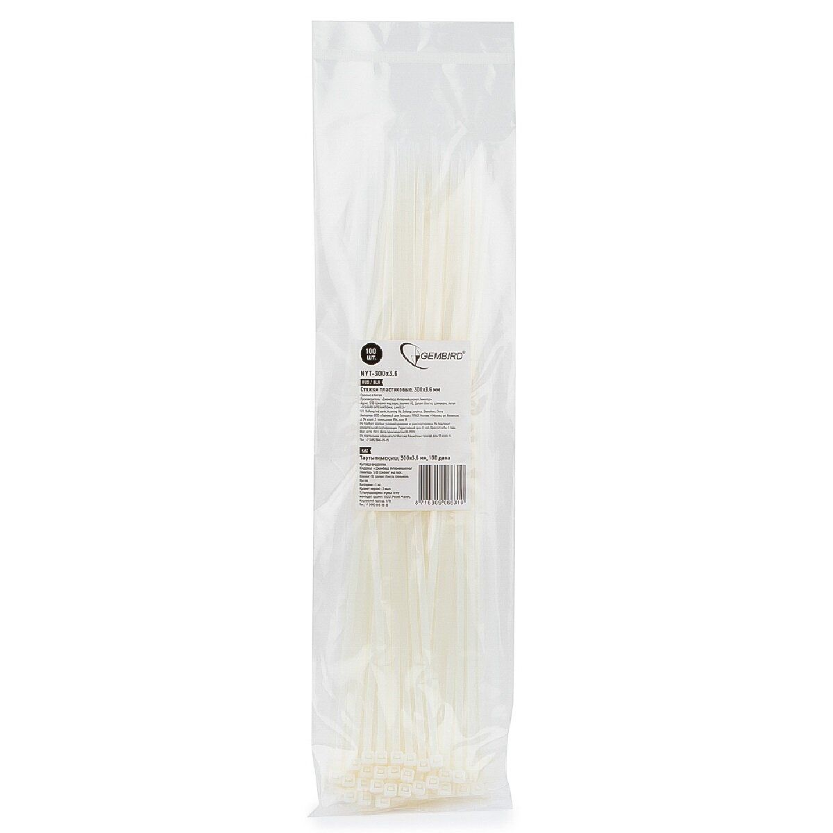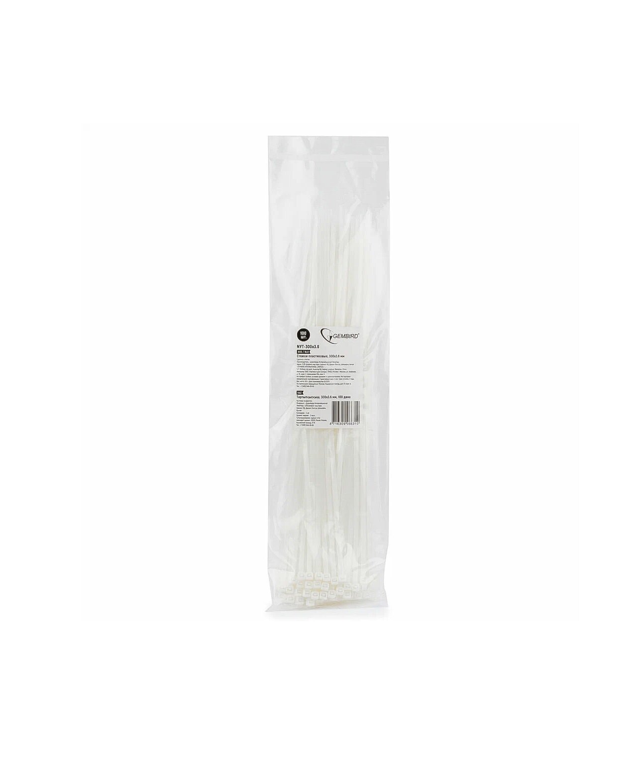 Стяжки Cablexpert пластиковые белые 300 мм х 3.6 мм (100 шт.) NYT-300x3.6