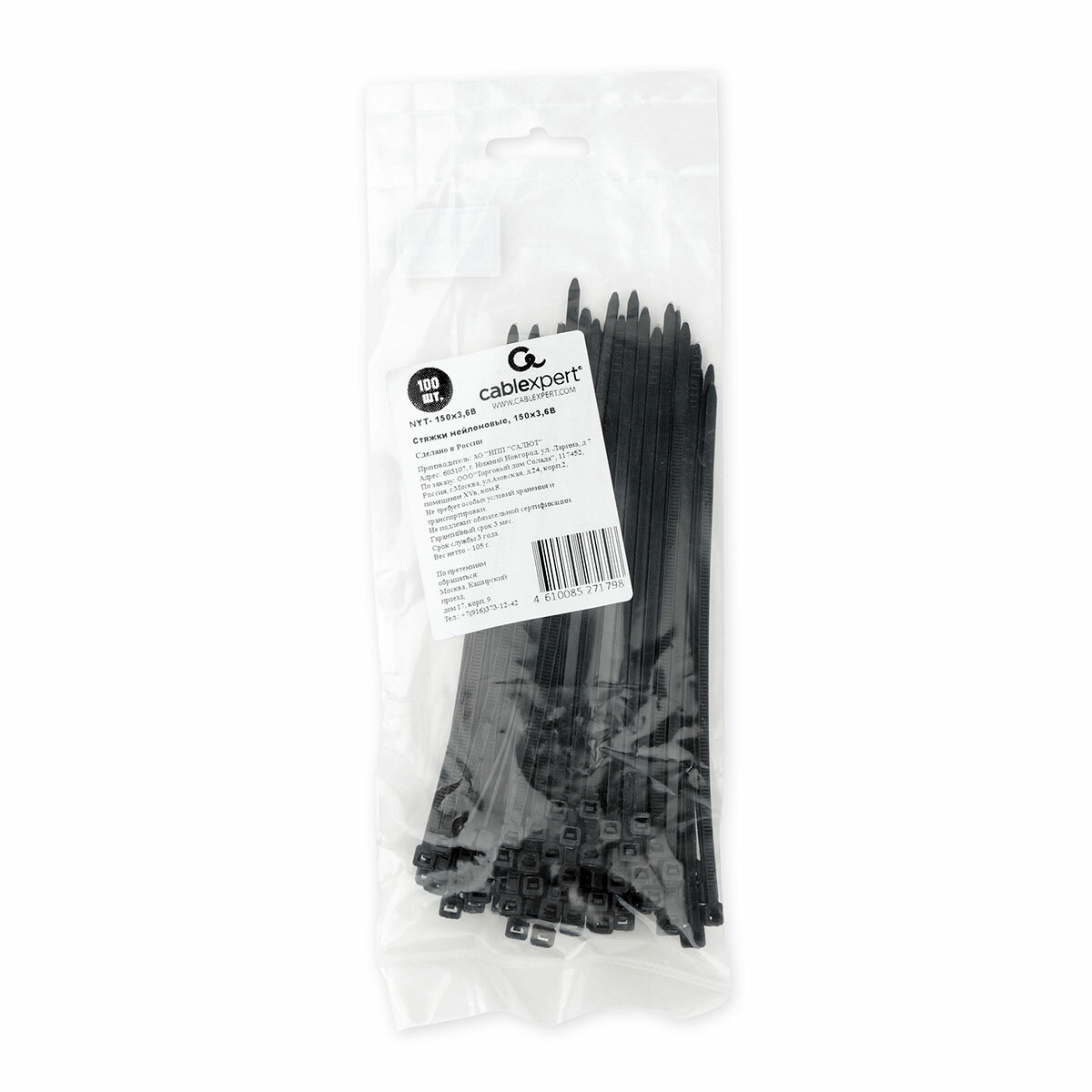 Стяжки Cablexpert чёрные пластиковые 150 мм х 3.6 мм (100 шт.) NYT-150x3.6B