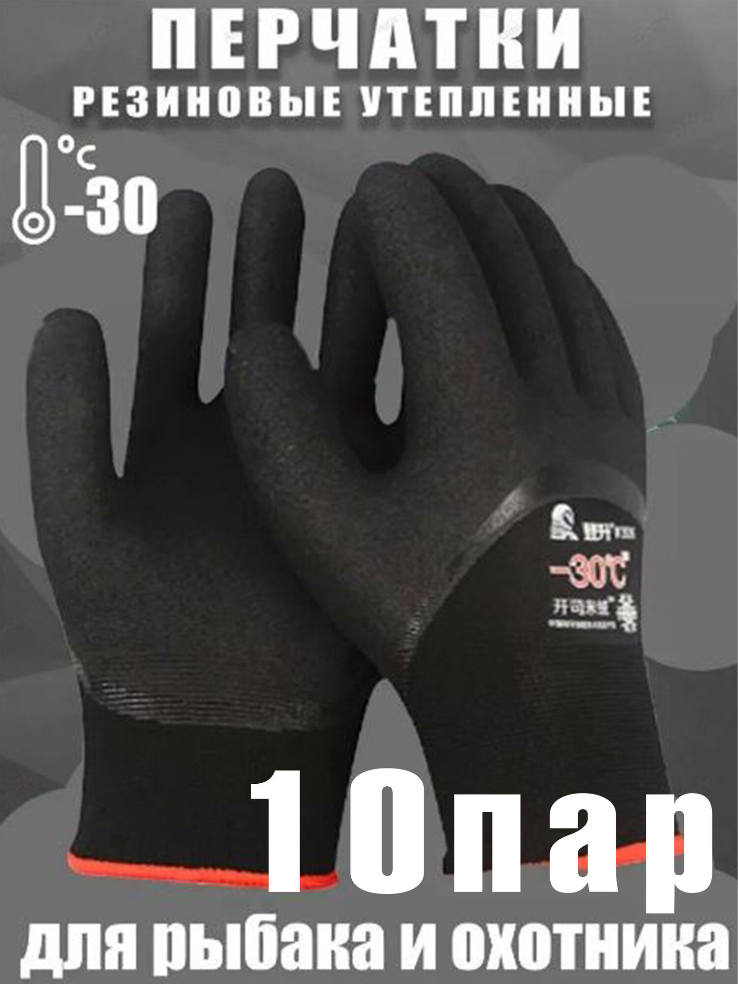 Прорезиненные на флисе перчатки черные 10 пар интересное: