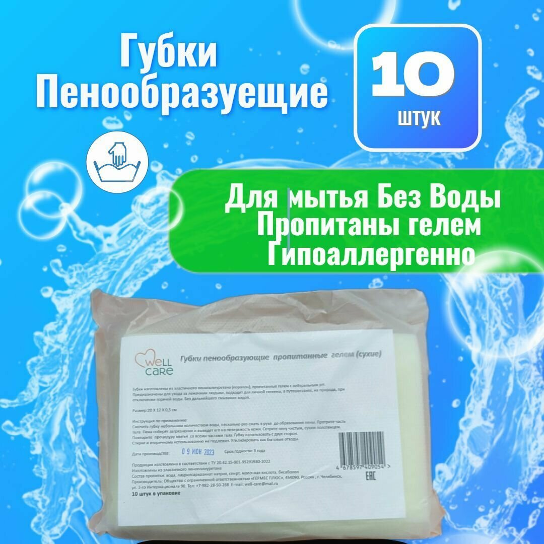 Без Воды - пенообразующая губка, поролоновая, пропитанная гелем, сухая, 12x20 см, 10 шт. интересное: