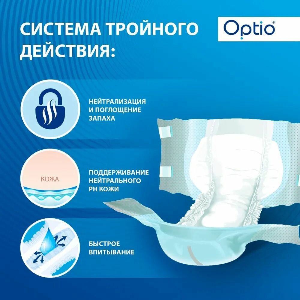 Подгузники для взрослых Optio, размер XL (120-170 см), 30 штук