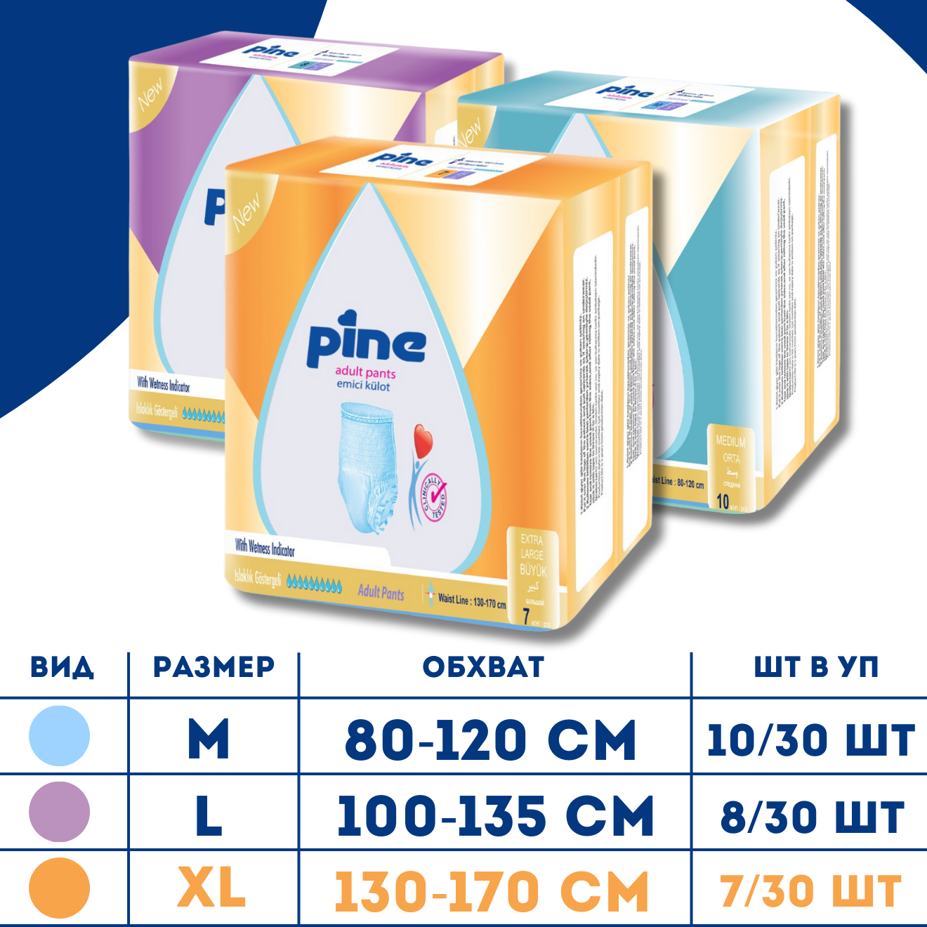 Подгузники трусики для взрослыхPine Adult Pants, XL, 130-170 см, 30 шт./уп. интересное: