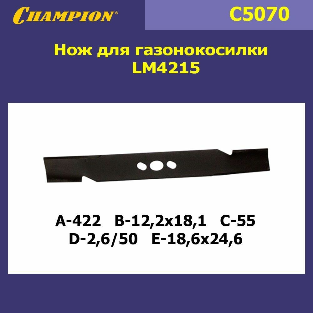 Нож для газонокосилки C5070 CHAMPION LM4215 (A-422B-12,2х18,1C-55D-2,6/50E-18,6х24,6)