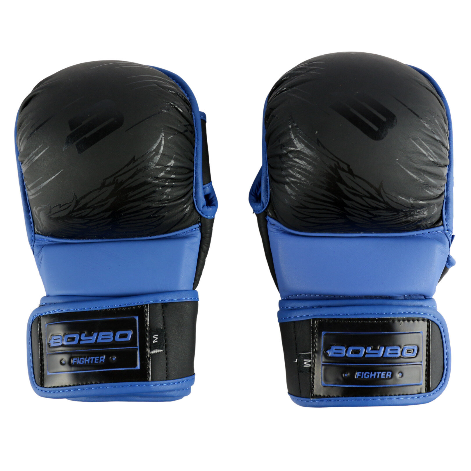 Перчатки ММА для смешанных единоборств, без пальцев, тренировочные тренировочные BoyBo Wings - Черный/Синий (L)