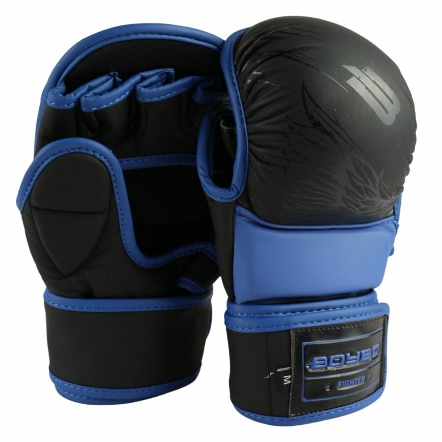 Купить Перчатки ММА для смешанных единоборств, без пальцев, тренировочные тренировочные BoyBo Wings - Черный/Синий (L)