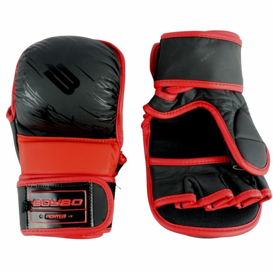 Перчатки ММА для смешанных единоборств, без пальцев, тренировочные тренировочные BoyBo Wings - Черный/Красный (L)
