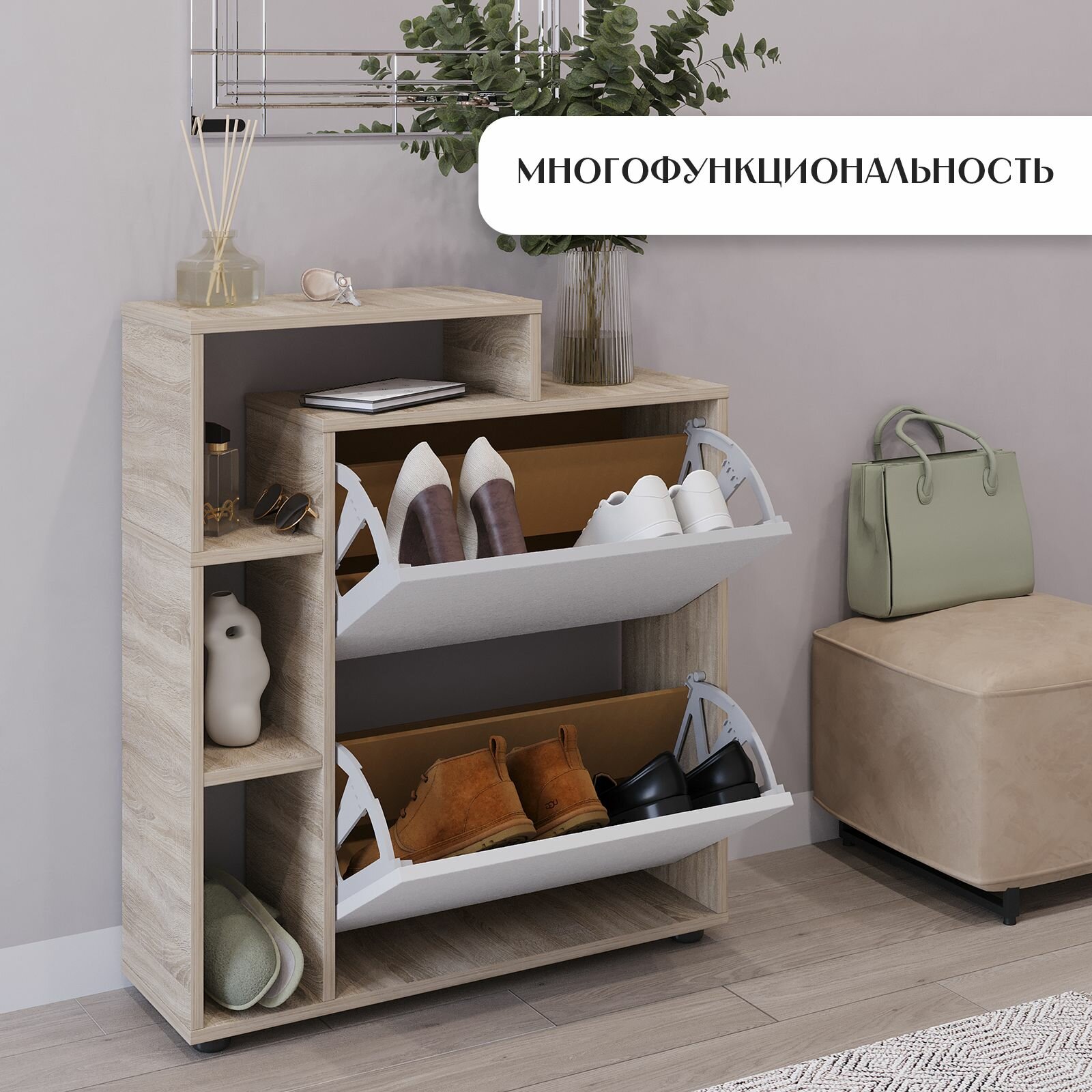 Обувница в прихожую Ultra Plus вертикальная 2 секции Дуб сонома/Белое тисн. 750х859х246 интересное: