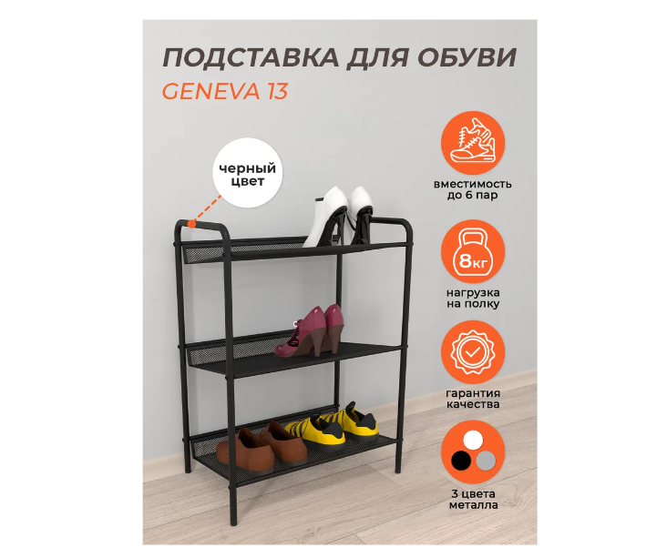 Подставка для обуви Зми 3-х полочная "Женева 13" черный