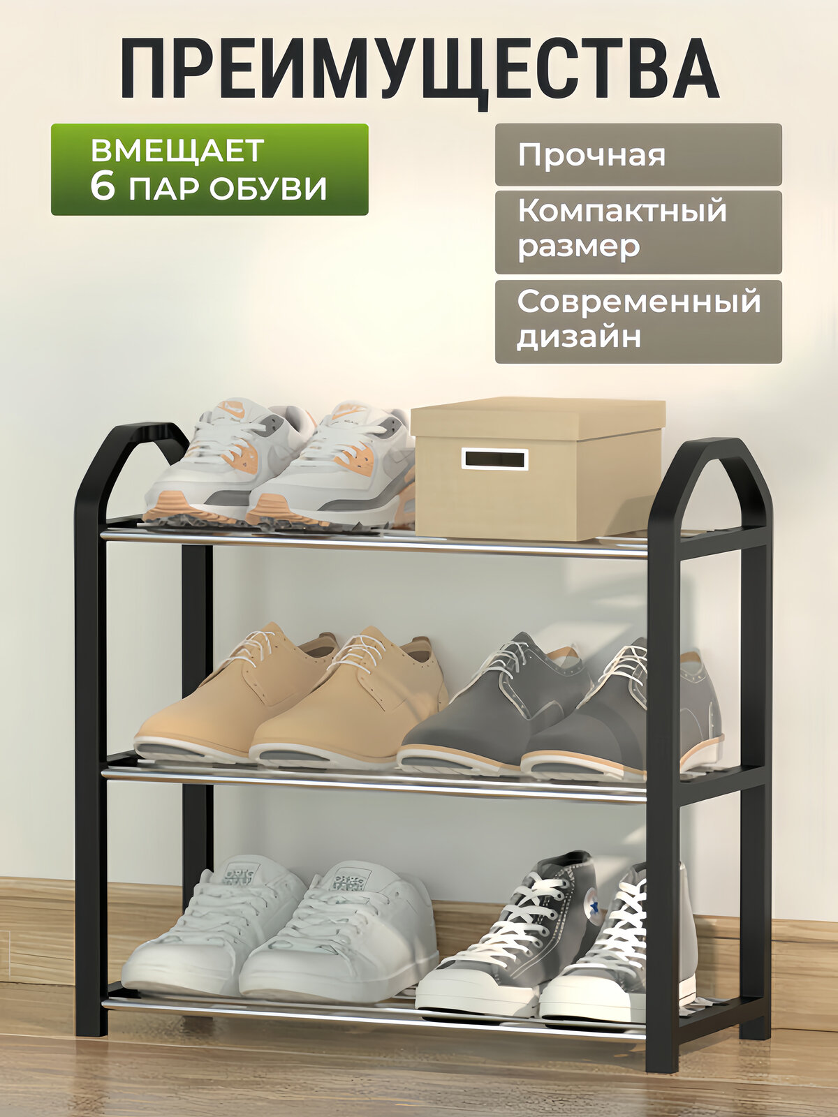 Обувница 41х42х19 см, с 3 полками, металл/пластик, черная, 6 пар интересное: