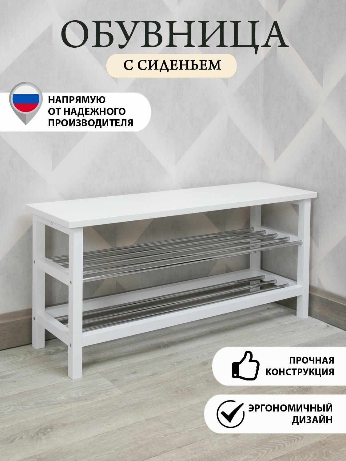 Купить Обувница "Порядок" с сиденьем для обуви, 108х55х34 см, нагрузка до 150кг