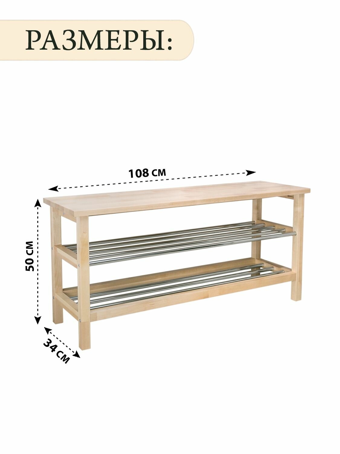 Обувница "Восток" с сиденьем, 108х34х55см, массив дерева, цвет бесцветный
