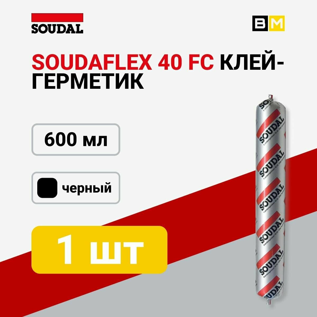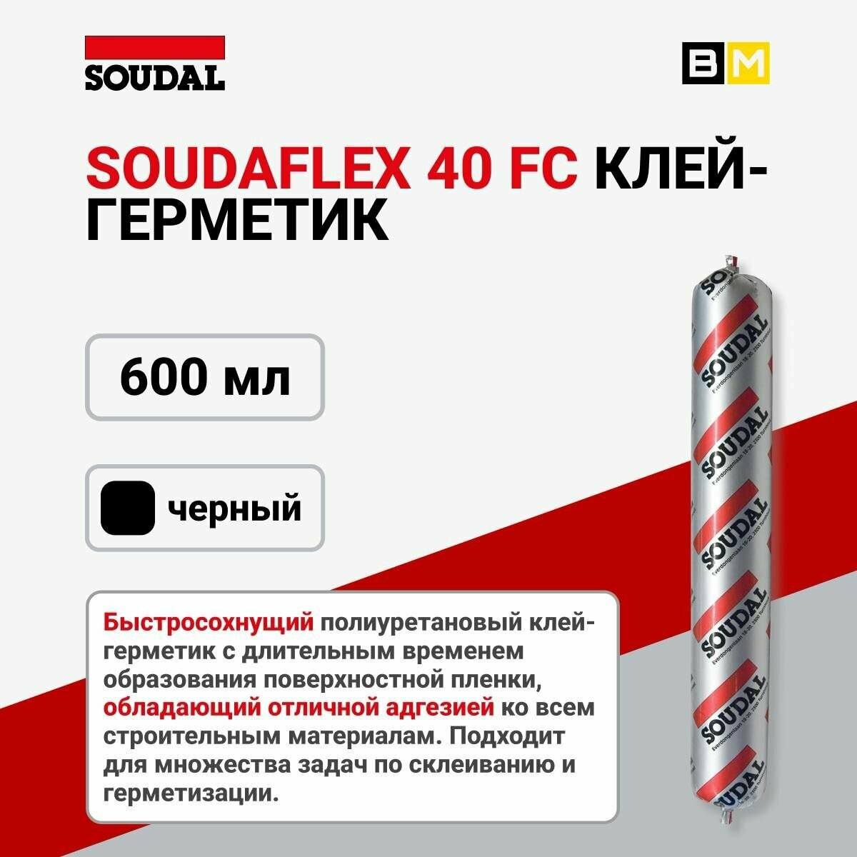 Soudal soudalflex 40 FC клей-герметик полиуретановый (черный, 600 мл)