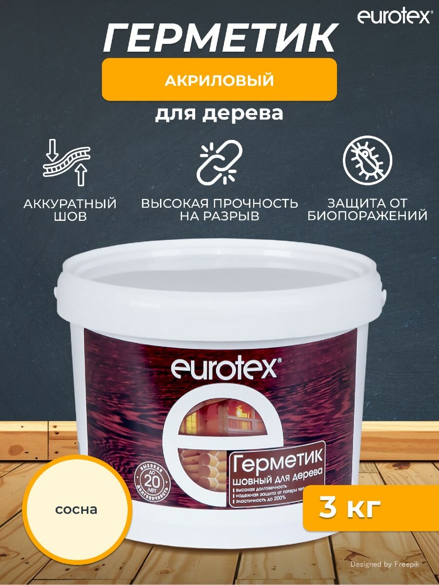 Герметик по дереву шовный EUROTEX сосна 3кг (Рогнеда)