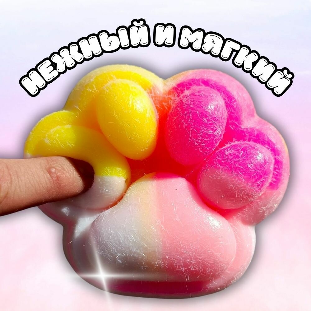 Пушистая Лапка антистресс Большая XXL разноцветная , Сквиш , жвачка для рук