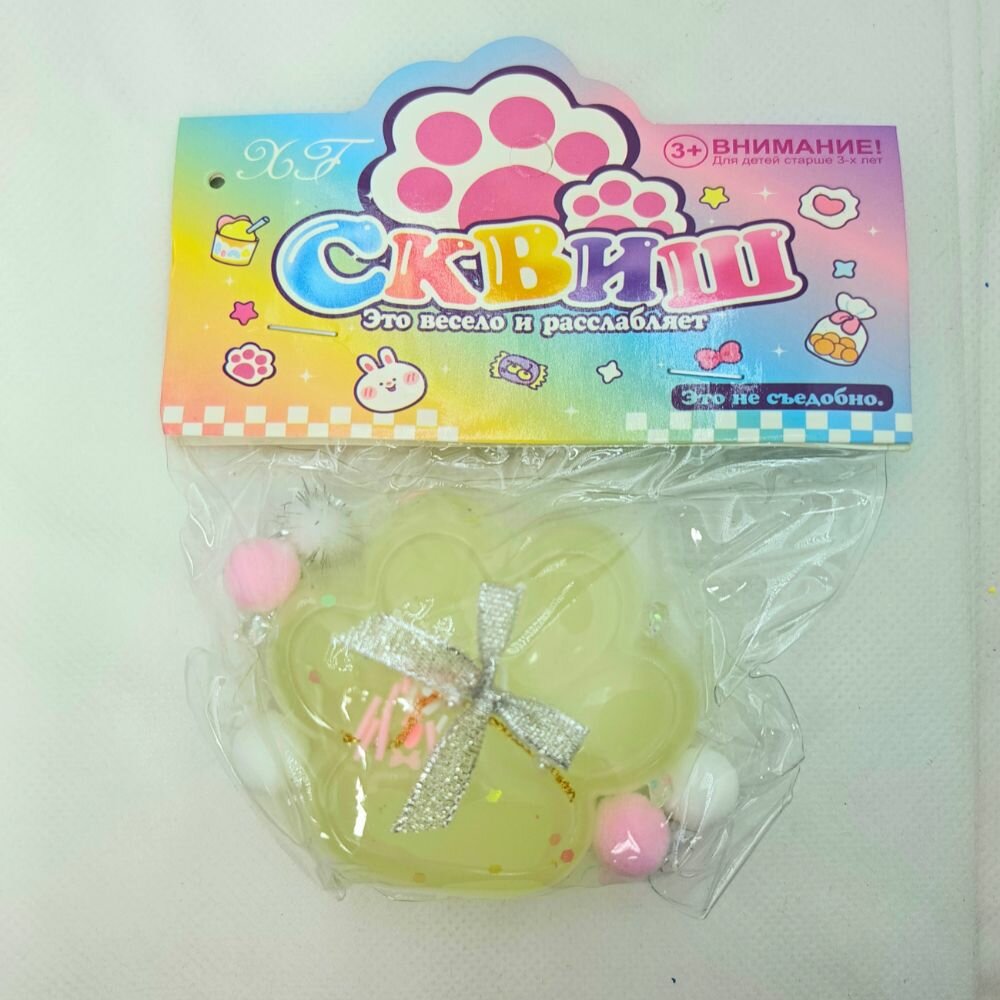 Лапка антистресс с блестками и бантиком , Сквиш лапа