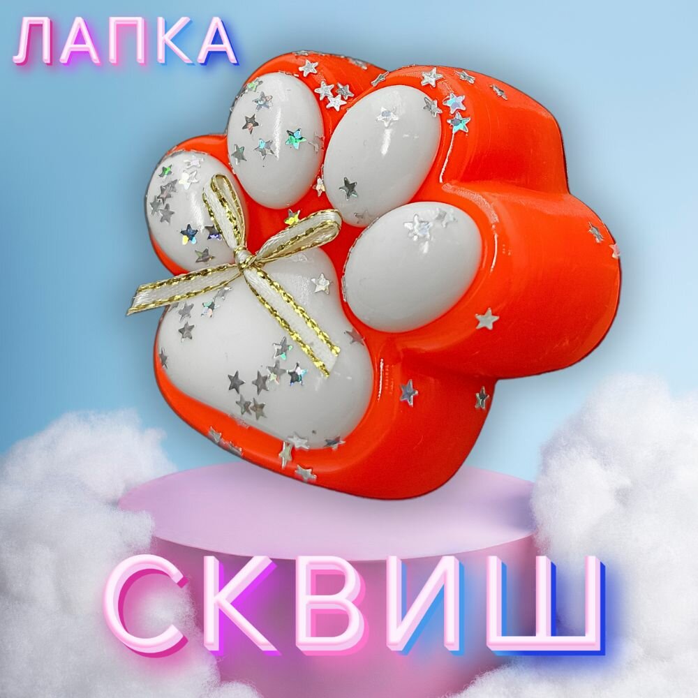 Лапка антистресс с блестками и бантиком , Сквиш лапа