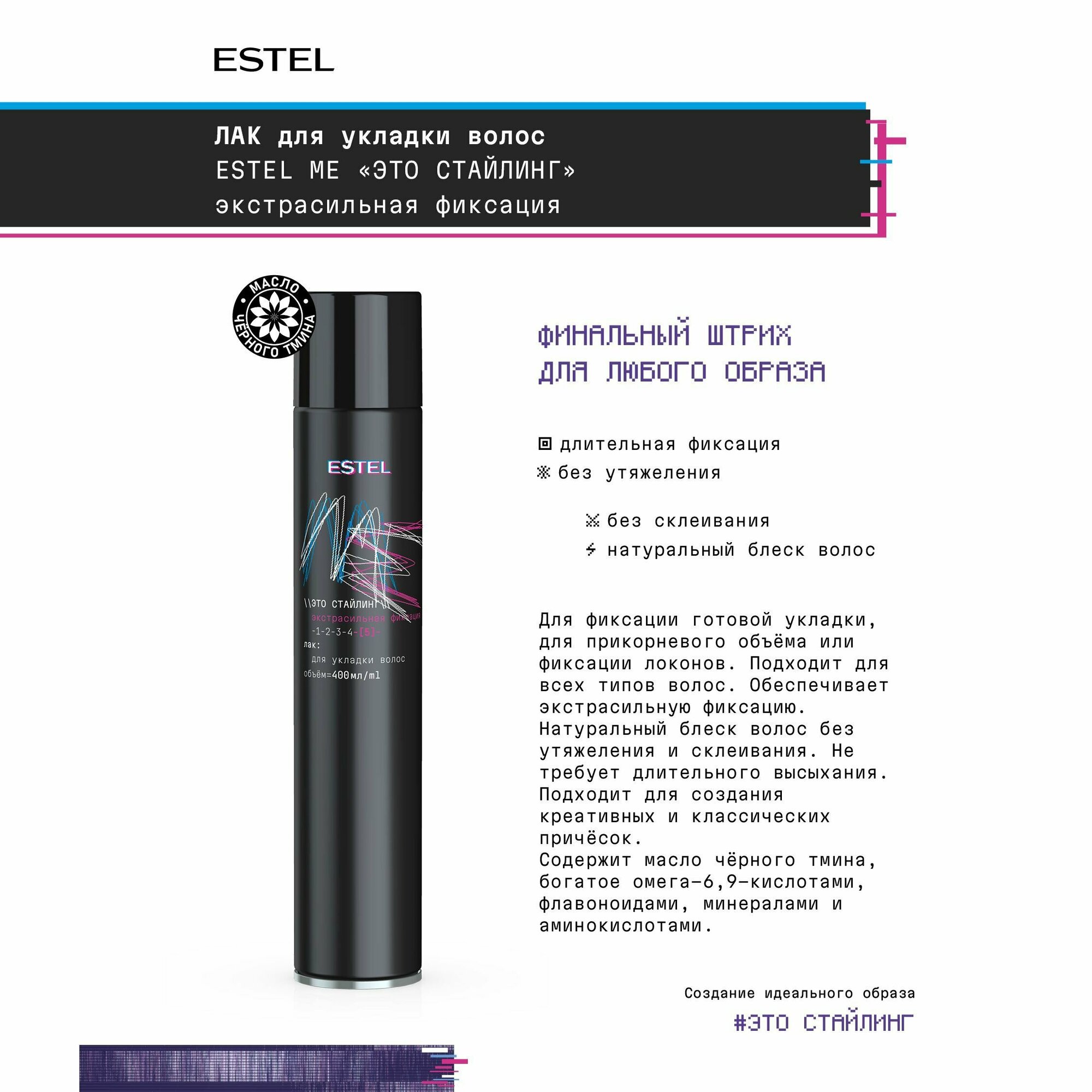ESTEL ME Это стайлинг Лак для укладки волос, экстрасильная фиксация, 400 мл