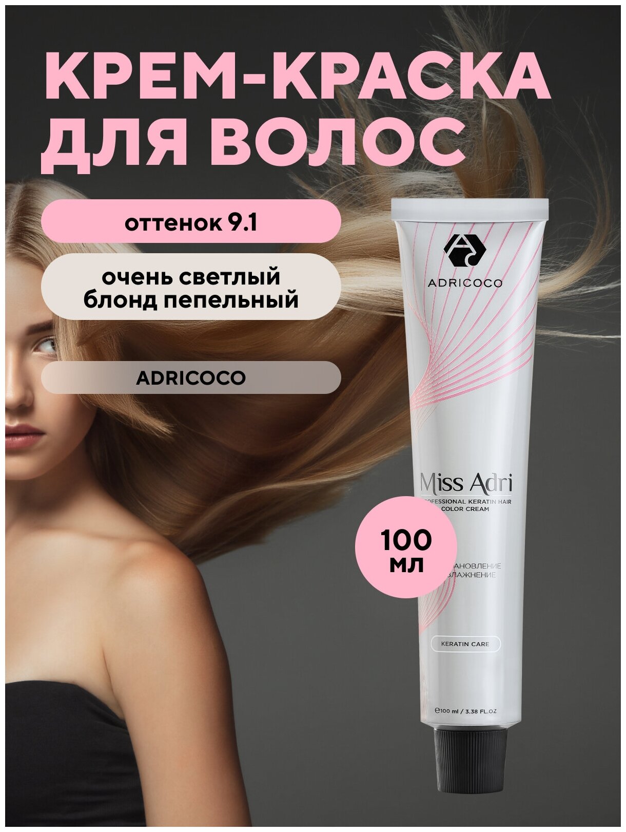 Купить Adricoco, Miss Adri - крем-краска для волос (9.1 Очень светлый блонд пепельный), 100 мл