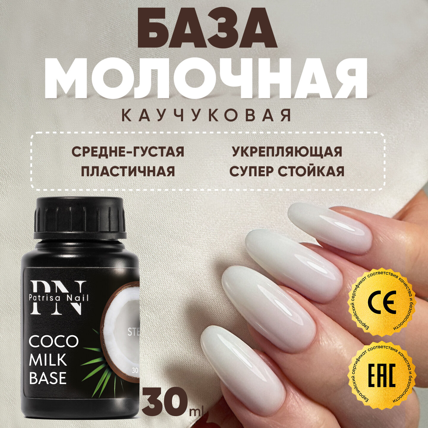Купить Каучуковая молочная база для ногтей Coco Milk Base, камуфлирующая, 30 мл