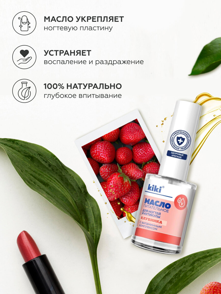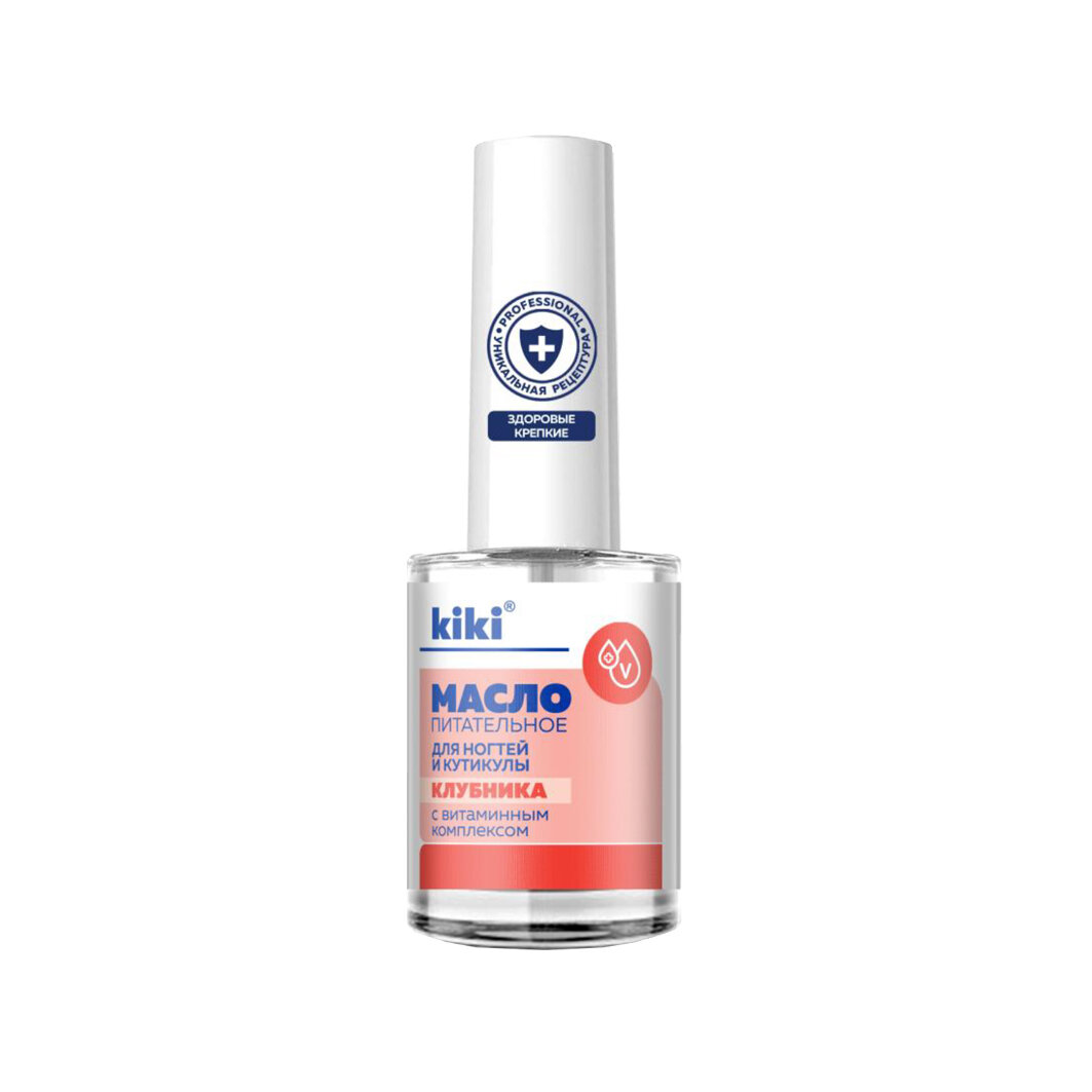 Масло для ногтей и кутикулы kiki для маникюра, педикюра, укрепление питание восстановление, с натуральным маслом семян клубники и витаминами А, Е, С, D, 12 мл аромат клубника