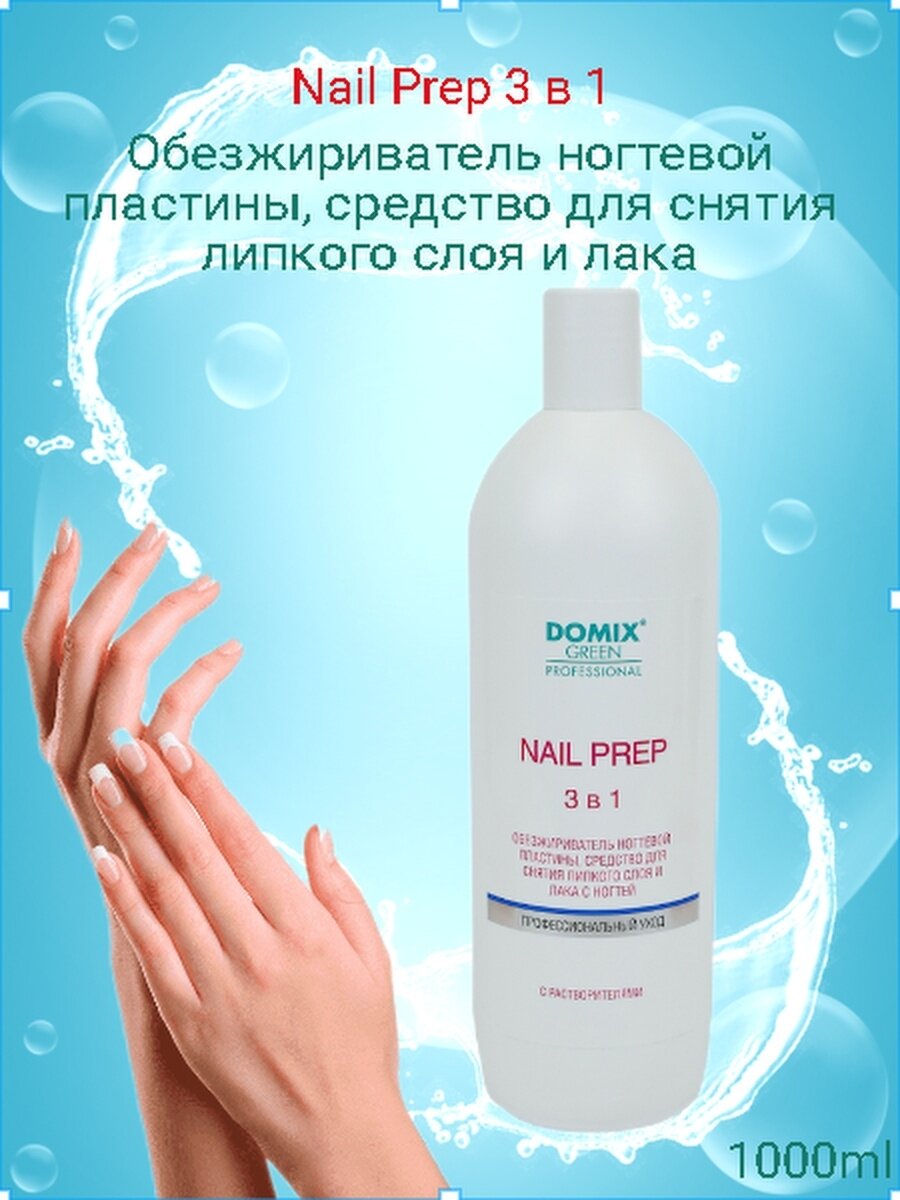 Domix Green Professional, Обезжириватель и ср-во для снятия липкого слоя и лака NAIL PREP 3в1,500 мл